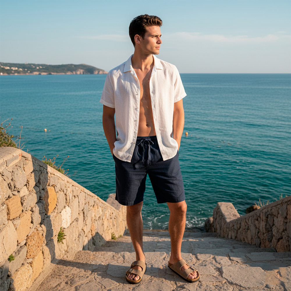 Para um fim de semana relaxante à beira-mar, a Bermuda de Linho é a escolha ideal. Produzida em linho leve e arejado, ela proporciona conforto absoluto enquanto você desfruta do momento com um toque de sofisticação.